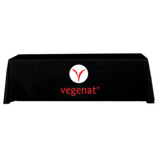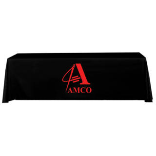 Display your logo with maximum contrast with a black trade show tablecloth for 8 feet wide tablesA great addition to your trade show booth, this 4-Sided Black Table Throw with 1 color logo print is sized to fit standard 8 feet table. This 4-sided (Full back) Table Throw has full length material on the front, back and both sides of the table.